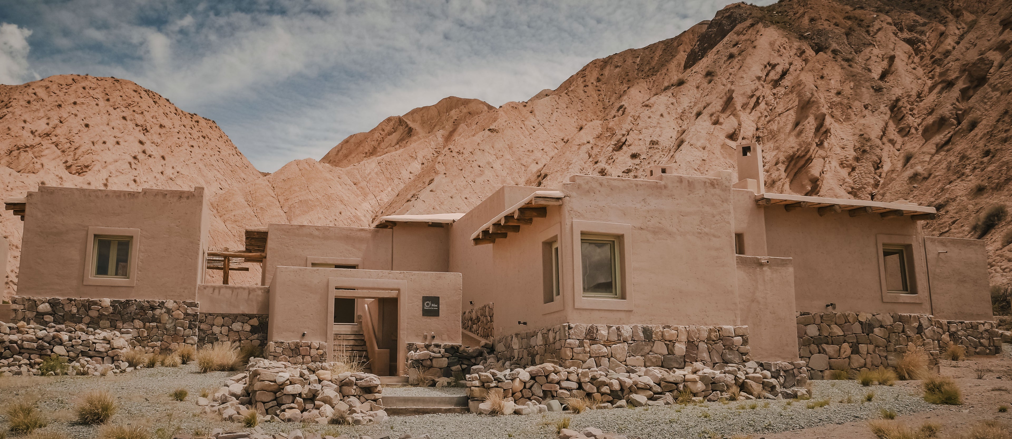 Lucio lebte viele Jahre in einer andinen Gemeinschaft nahe Tilcara und fotografierte das Leben dort mit unverstelltem Blick – nahbar, respektvoll, reduziert. Das MEC spiegelt diese Haltung: ein stiller Ort für Begegnung und Reflexion, ruhig eingebettet in die Landschaft. Stein, Adobe, Schilfrohr und Lehm verschmelzen mit der Puna. Architektur, die atmet und sich der Topografie unterordnet, statt sie zu dominieren.